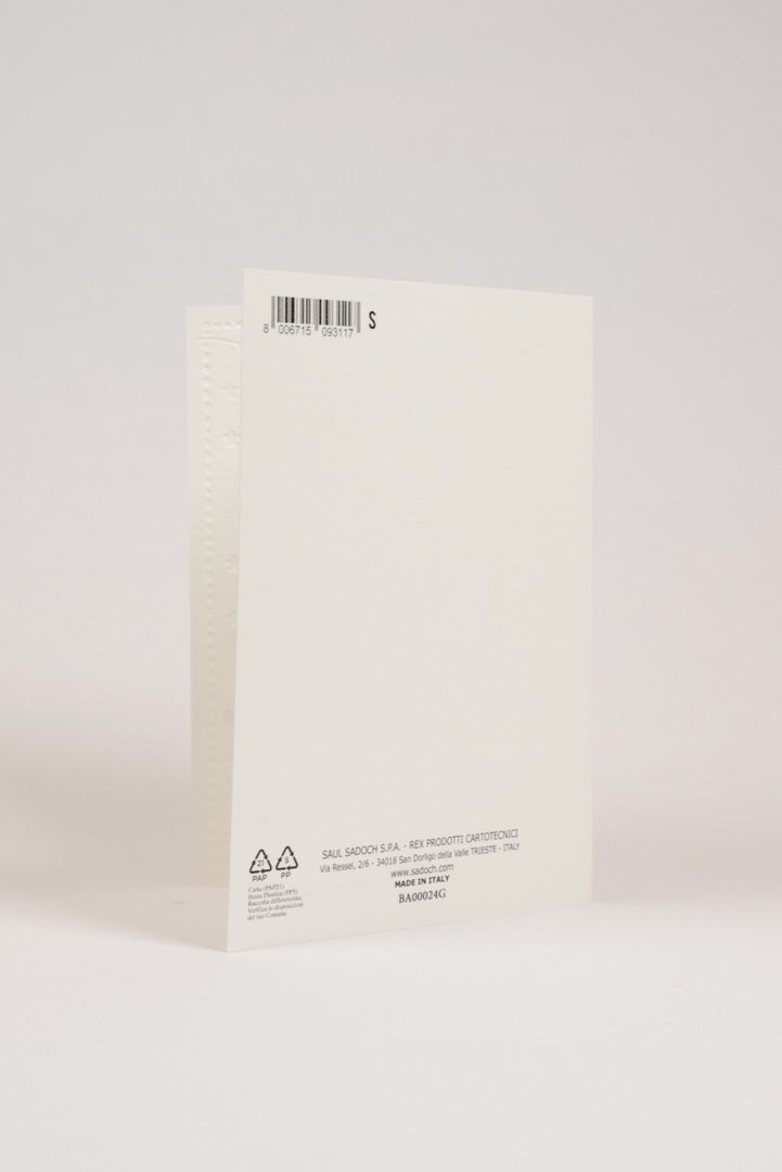 All'interno, il messaggio augurale "Lo splendore di questo momento ti accompagni tutta la vita" esprime un desiderio profondo e significativo, rendendo questo biglietto ideale per nonni, padrini, madrine o amici di famiglia che desiderano accompagnare il loro dono con parole cariche di affetto e speranza per il futuro del piccolo.